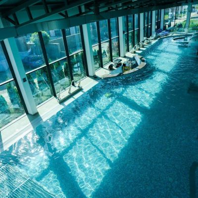 Aqua park Hollywood Land posetiocima nudi jedinstven sadržaj zabave na vodi u bilo kom periodu godine. U okviru zatvorenog dela kompleksa aqua park poseduje centralni bazen, bazen sa hidro masažnim sistemom, bazen za decu, tobogane, đakuzi kadu, relaks centar, saunu, slanu sobu, tursko kupatilo kao i fitness centar. Takođe, u ponudi su i usluge profesionalnih masera i frizera.