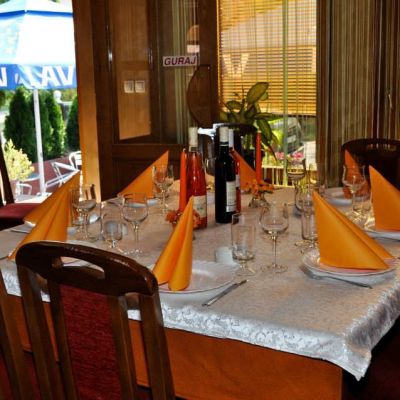 Restoran Excalibur raspolaže sa malom salom kapaciteta do 70 mesta, velikom salom kapaciteta do 200 mesta, terasom koja prima 40 ljudi i baštom, parking mestom i apartmanskim smeštajem. Restoran nudi i ketering za sve vrste proslava.
