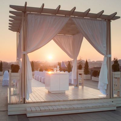 Senzacionalan prostor u samom srcu Zemuna idealan za glamurozno venčanje iz snova. Vrhunska organizacija, profesionalno osoblje, veliki izbor menija raznovrsne i umetnički pripremljene hrane, kao i bogate ponude pića najbolja su garancija da ce svi gosti imati nezaboravane uspomene.
