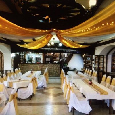 Široki prostor unutrašnjeg dela restorana može se deliti na tri dela. Prvi je ulazni deo romantičnog enterijera, druga prostorija je raskošna sala i terasa. .