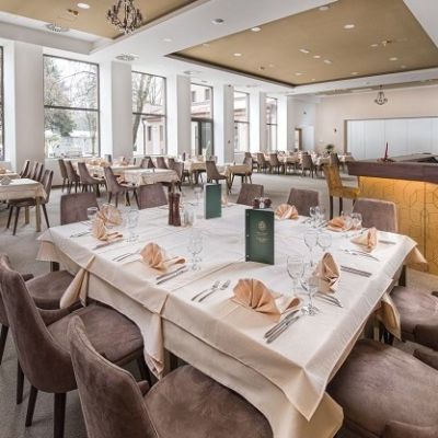 Poseduje dve restoranske sale sa 350 mesta, vinoteku, TV salu, žuti i zeleni salon pogodne za poslovne ručkove i večere. U restoranu se organizuju venčanja, banketi, proslave, seminari, poslovni ručkovi i večere.