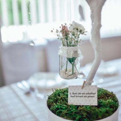 Unikatna i maštovita dekoracija poput pozivnica, bedževa za kićenje svatova, brojeva za stolove, rasporeda sedenja gostiju, poklona za Vaše goste kao i drvo otisaka.