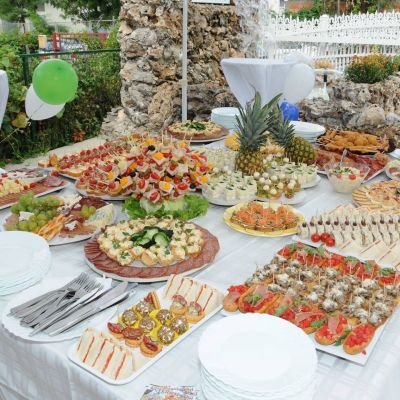 Organizvanje sve vrste proslava gde pored hrane i pića u ponudi imaju i sav propratni inventar ( stoljnaci, tanjiri, escajg, čaše, suncobrani, stolovi i stolice, pultovi...)