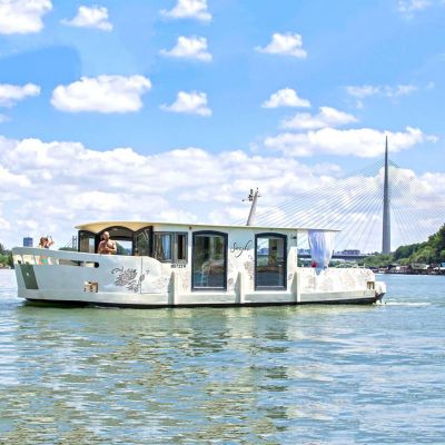 4.4Snajka je višenamenski brod katamaran sa otvorenom platformom i unutrašnim apartmanom. Prednja i zadnja paluba sa apartmanskim delom ćine jedinstvenu celinu od 70m2 prostora za zabavu. Požurite da se ukrcate u ovaj intimni plutalući komad raja nasred Beograda.